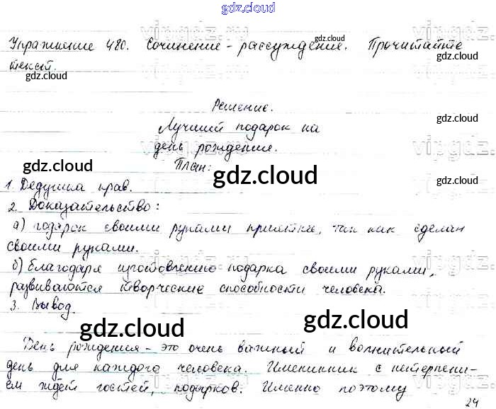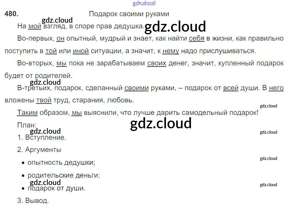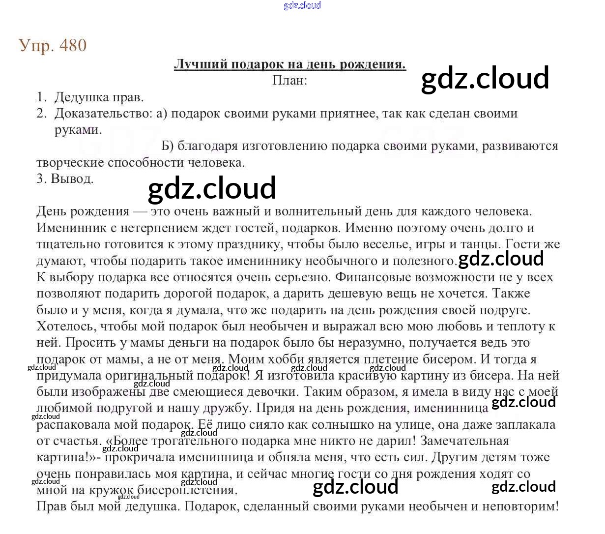 Ответ на задание 480 Учебник Русский язык за 6 (шестой) класс Баранов, Ладыженская, Тростенцова, Григорян, Кулибаба 2015, 2022 Часть 1, 2