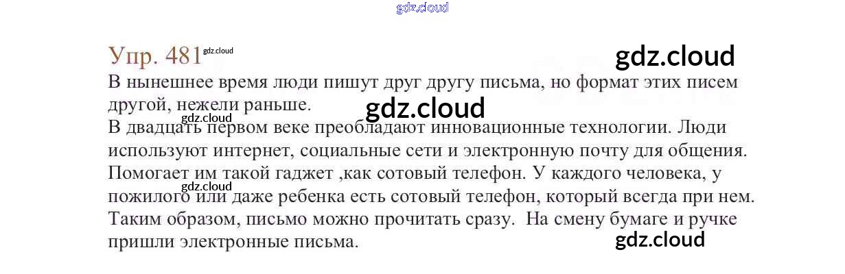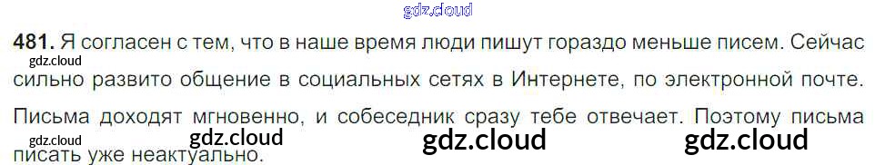 Ответ на задание 481 Учебник Русский язык за 6 (шестой) класс Баранов, Ладыженская, Тростенцова, Григорян, Кулибаба 2015, 2022 Часть 1, 2