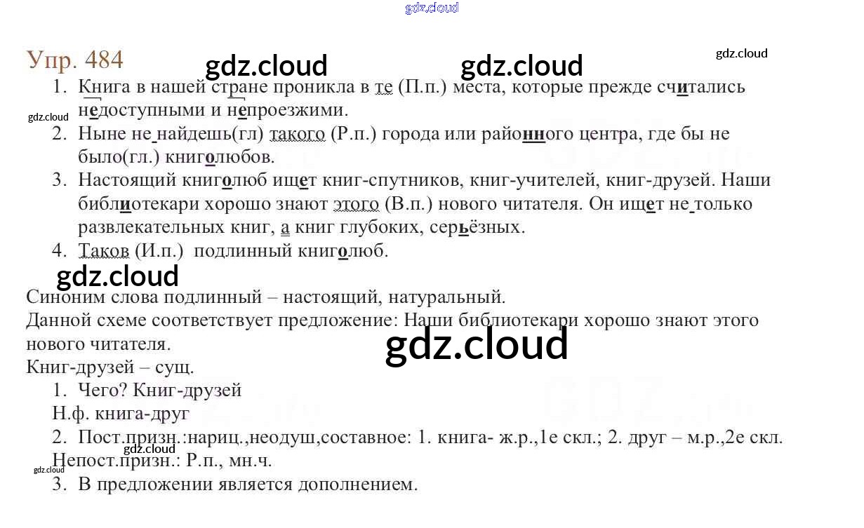 Ответ на задание 484 Учебник Русский язык за 6 (шестой) класс Баранов, Ладыженская, Тростенцова, Григорян, Кулибаба 2015, 2022 Часть 1, 2