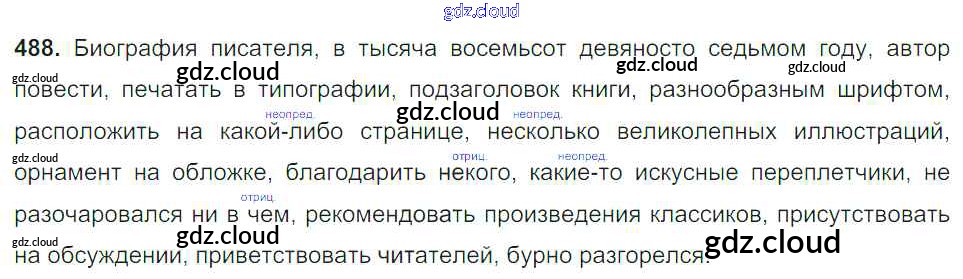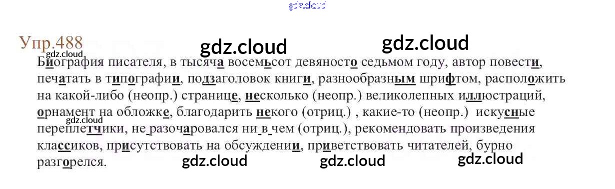 Ответ на задание 488 Учебник Русский язык за 6 (шестой) класс Баранов, Ладыженская, Тростенцова, Григорян, Кулибаба 2015, 2022 Часть 1, 2