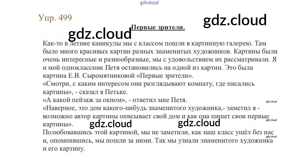 Ответ на задание 499 Учебник Русский язык за 6 (шестой) класс Баранов, Ладыженская, Тростенцова, Григорян, Кулибаба 2015, 2022 Часть 1, 2