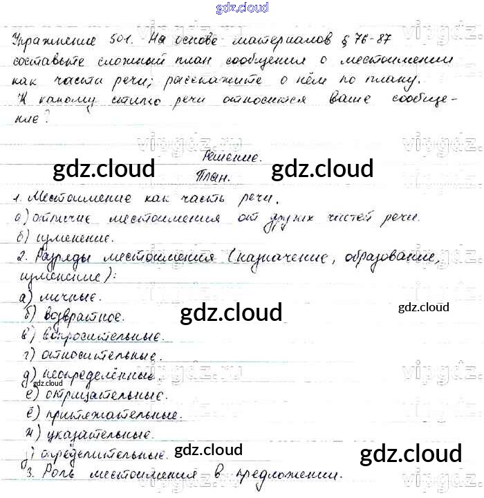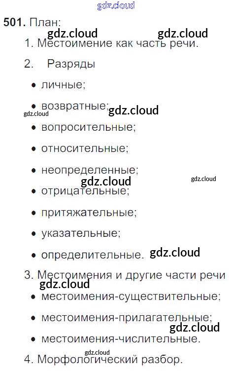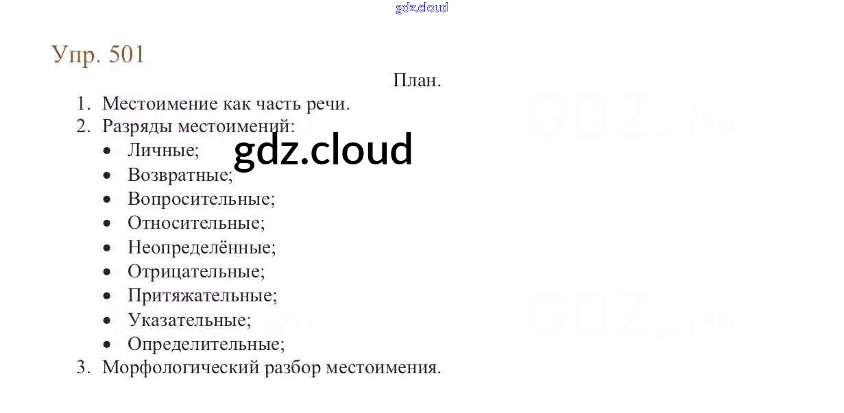Ответ на задание 501 Учебник Русский язык за 6 (шестой) класс Баранов, Ладыженская, Тростенцова, Григорян, Кулибаба 2015, 2022 Часть 1, 2