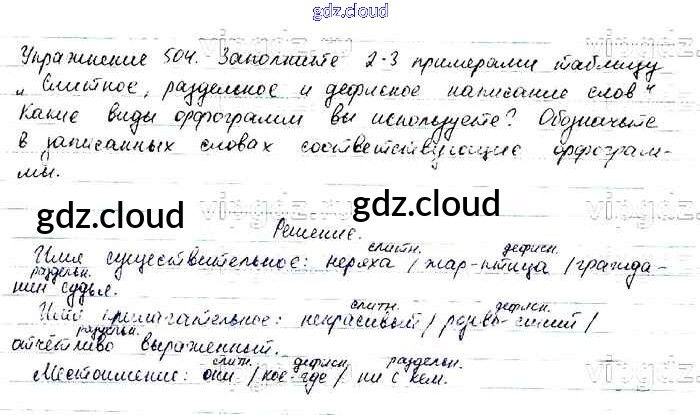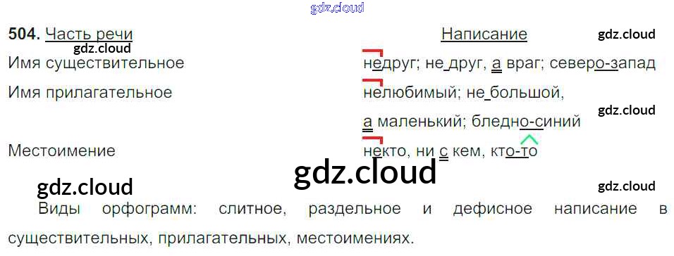 Ответ на задание 504 Учебник Русский язык за 6 (шестой) класс Баранов, Ладыженская, Тростенцова, Григорян, Кулибаба 2015, 2022 Часть 1, 2