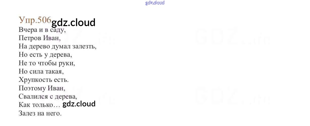 Ответ на задание 506 Учебник Русский язык за 6 (шестой) класс Баранов, Ладыженская, Тростенцова, Григорян, Кулибаба 2015, 2022 Часть 1, 2