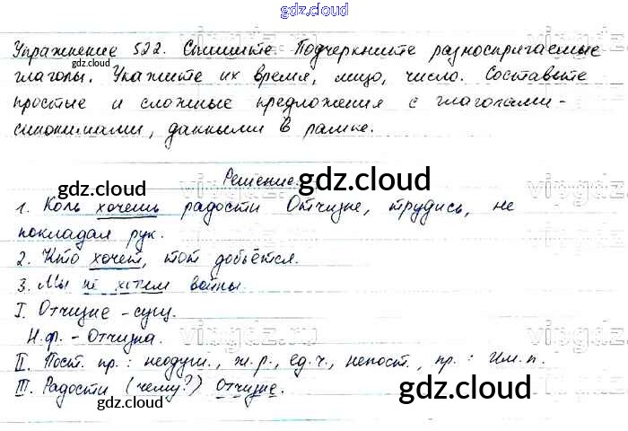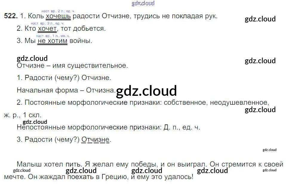 Ответ на задание 522 Учебник Русский язык за 6 (шестой) класс Баранов, Ладыженская, Тростенцова, Григорян, Кулибаба 2015, 2022 Часть 1, 2