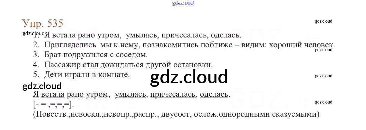 Ответ на задание 535 Учебник Русский язык за 6 (шестой) класс Баранов, Ладыженская, Тростенцова, Григорян, Кулибаба 2015, 2022 Часть 1, 2