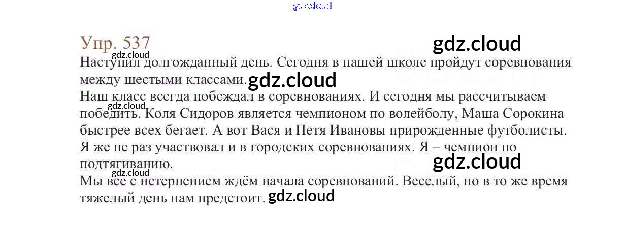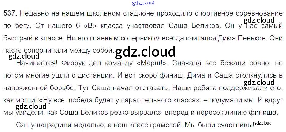Ответ на задание 537 Учебник Русский язык за 6 (шестой) класс Баранов, Ладыженская, Тростенцова, Григорян, Кулибаба 2015, 2022 Часть 1, 2