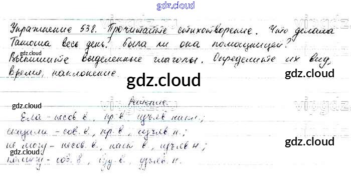 Ответ на задание 538 Учебник Русский язык за 6 (шестой) класс Баранов, Ладыженская, Тростенцова, Григорян, Кулибаба 2015, 2022 Часть 1, 2