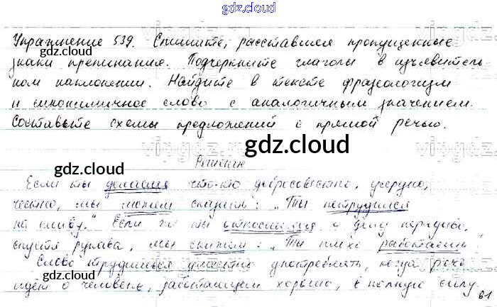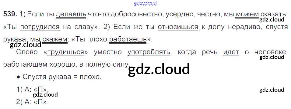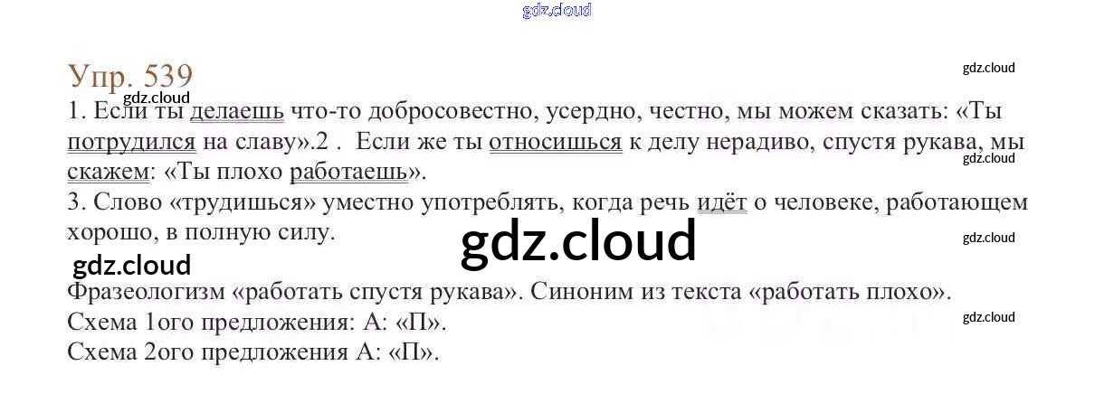 Ответ на задание 539 Учебник Русский язык за 6 (шестой) класс Баранов, Ладыженская, Тростенцова, Григорян, Кулибаба 2015, 2022 Часть 1, 2