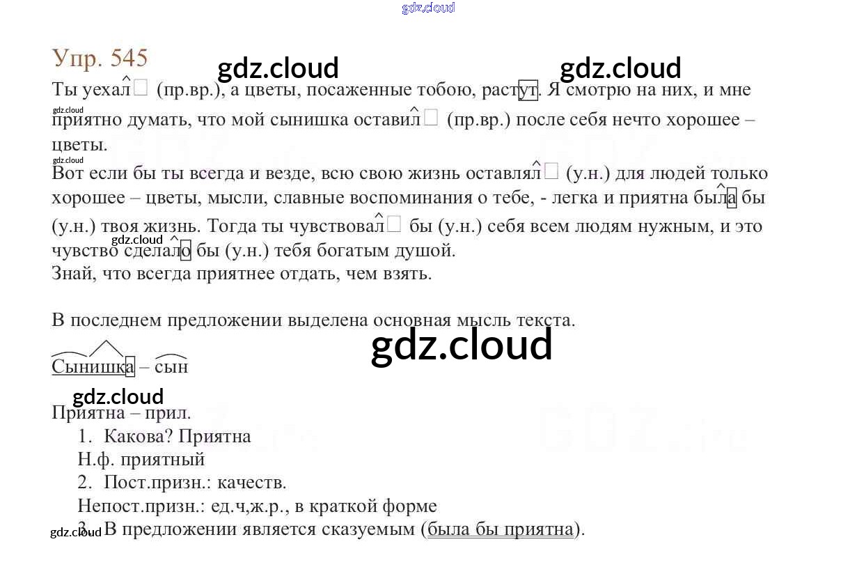 Ответ на задание 545 Учебник Русский язык за 6 (шестой) класс Баранов, Ладыженская, Тростенцова, Григорян, Кулибаба 2015, 2022 Часть 1, 2