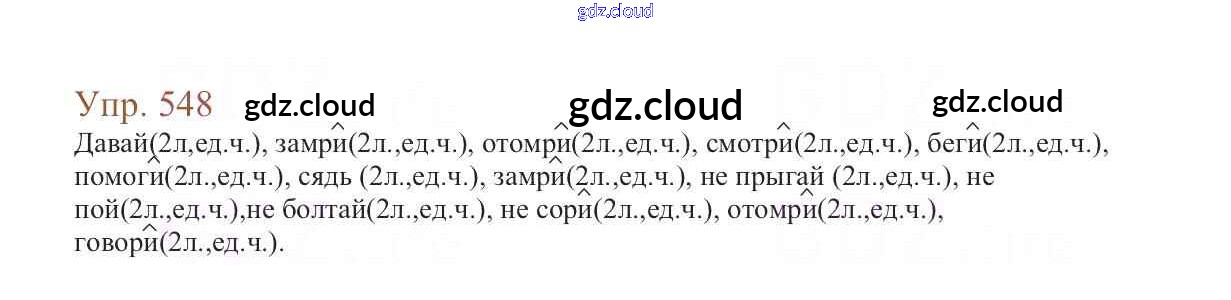 Ответ на задание 548 Учебник Русский язык за 6 (шестой) класс Баранов, Ладыженская, Тростенцова, Григорян, Кулибаба 2015, 2022 Часть 1, 2