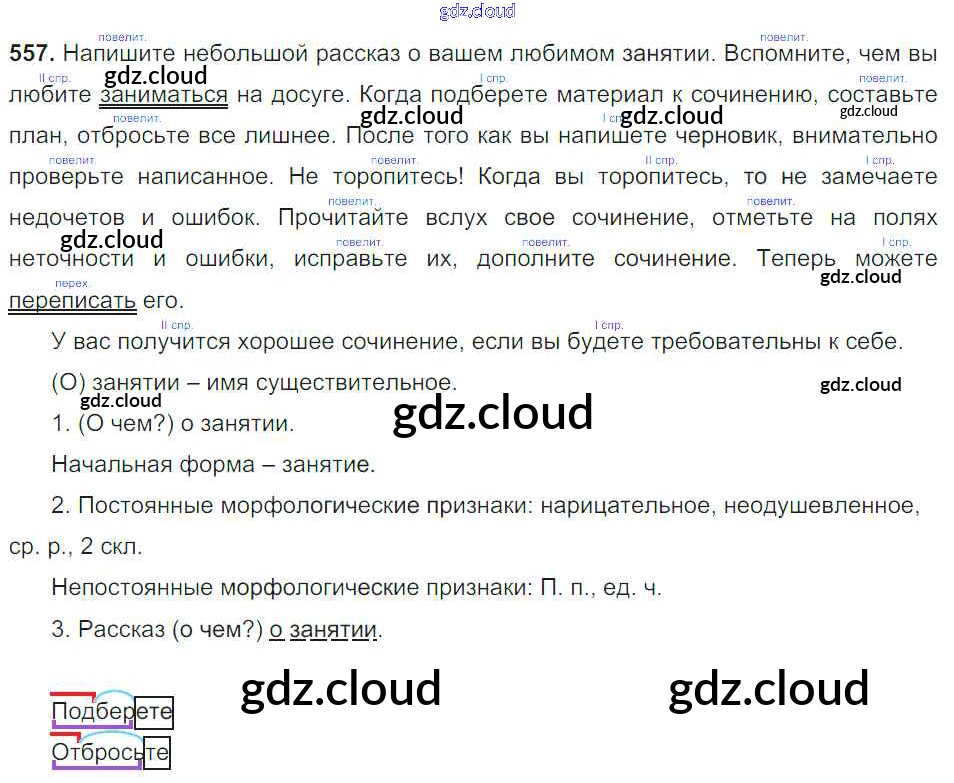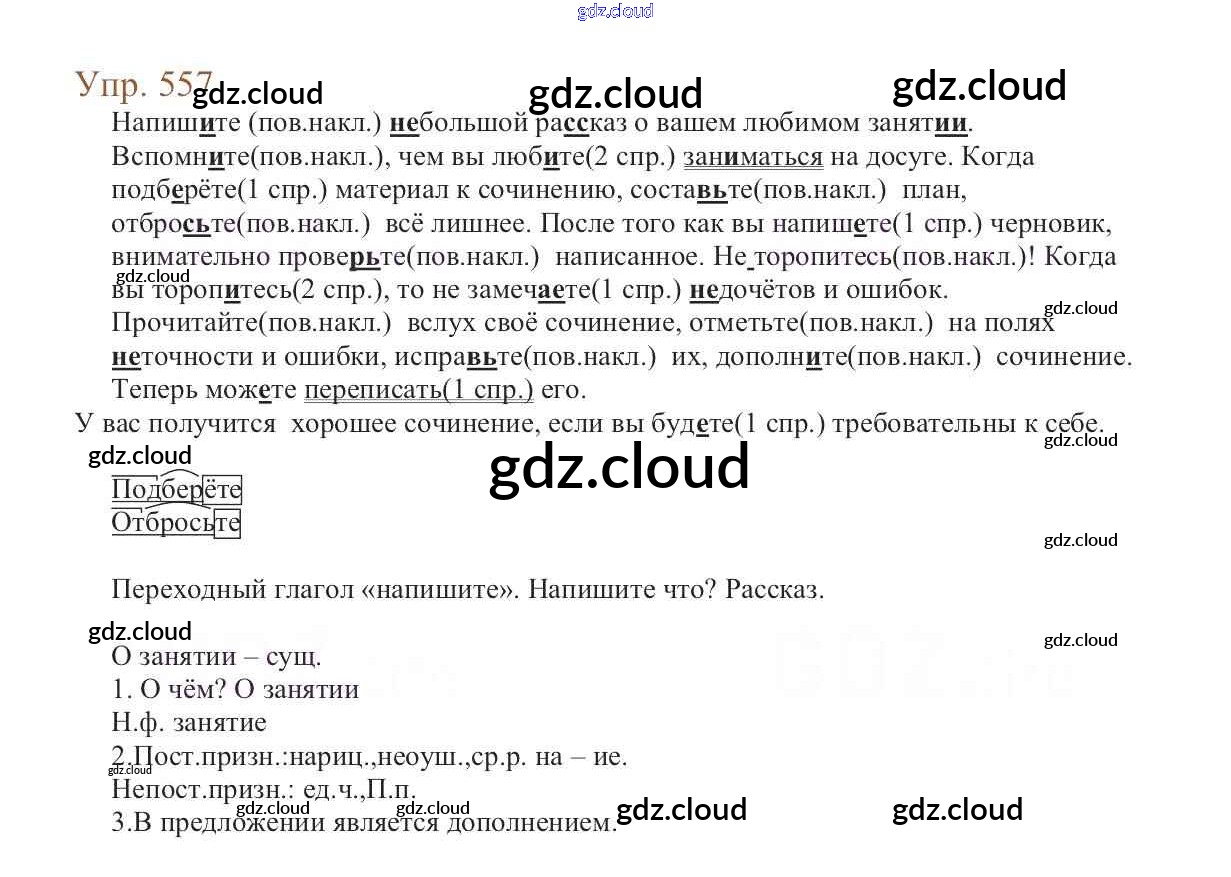 Ответ на задание 557 Учебник Русский язык за 6 (шестой) класс Баранов, Ладыженская, Тростенцова, Григорян, Кулибаба 2015, 2022 Часть 1, 2