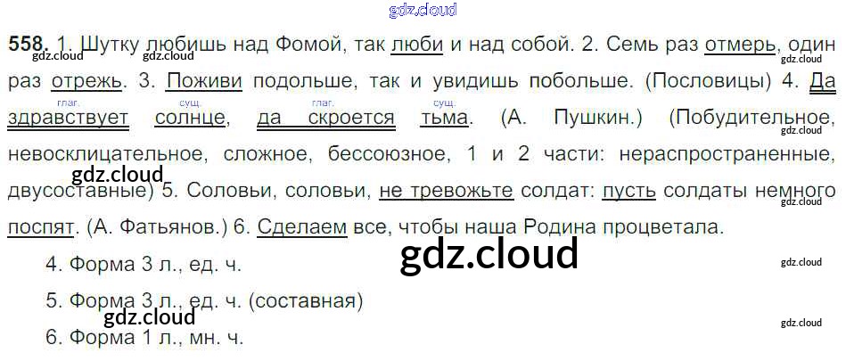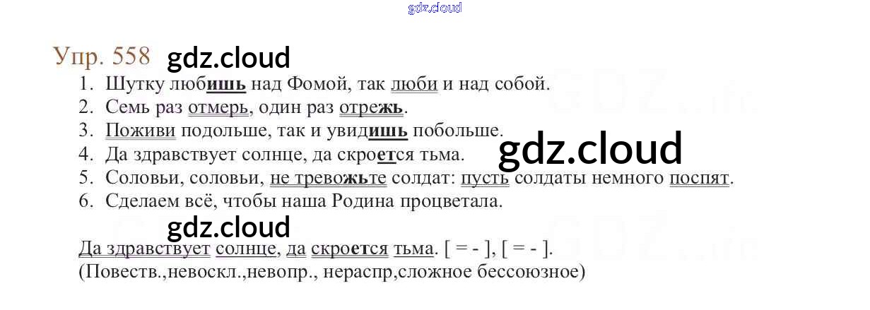 Ответ на задание 558 Учебник Русский язык за 6 (шестой) класс Баранов, Ладыженская, Тростенцова, Григорян, Кулибаба 2015, 2022 Часть 1, 2