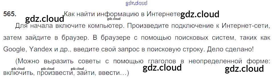 Ответ на задание 565 Учебник Русский язык за 6 (шестой) класс Баранов, Ладыженская, Тростенцова, Григорян, Кулибаба 2015, 2022 Часть 1, 2