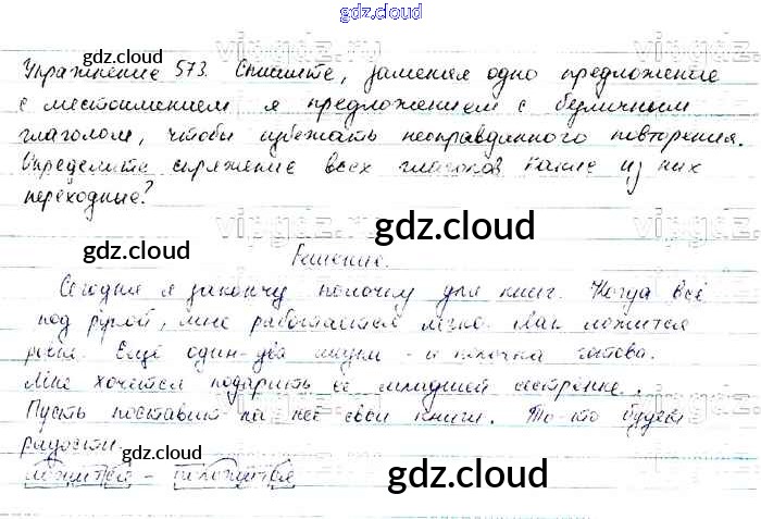 Ответ на задание 573 Учебник Русский язык за 6 (шестой) класс Баранов, Ладыженская, Тростенцова, Григорян, Кулибаба 2015, 2022 Часть 1, 2