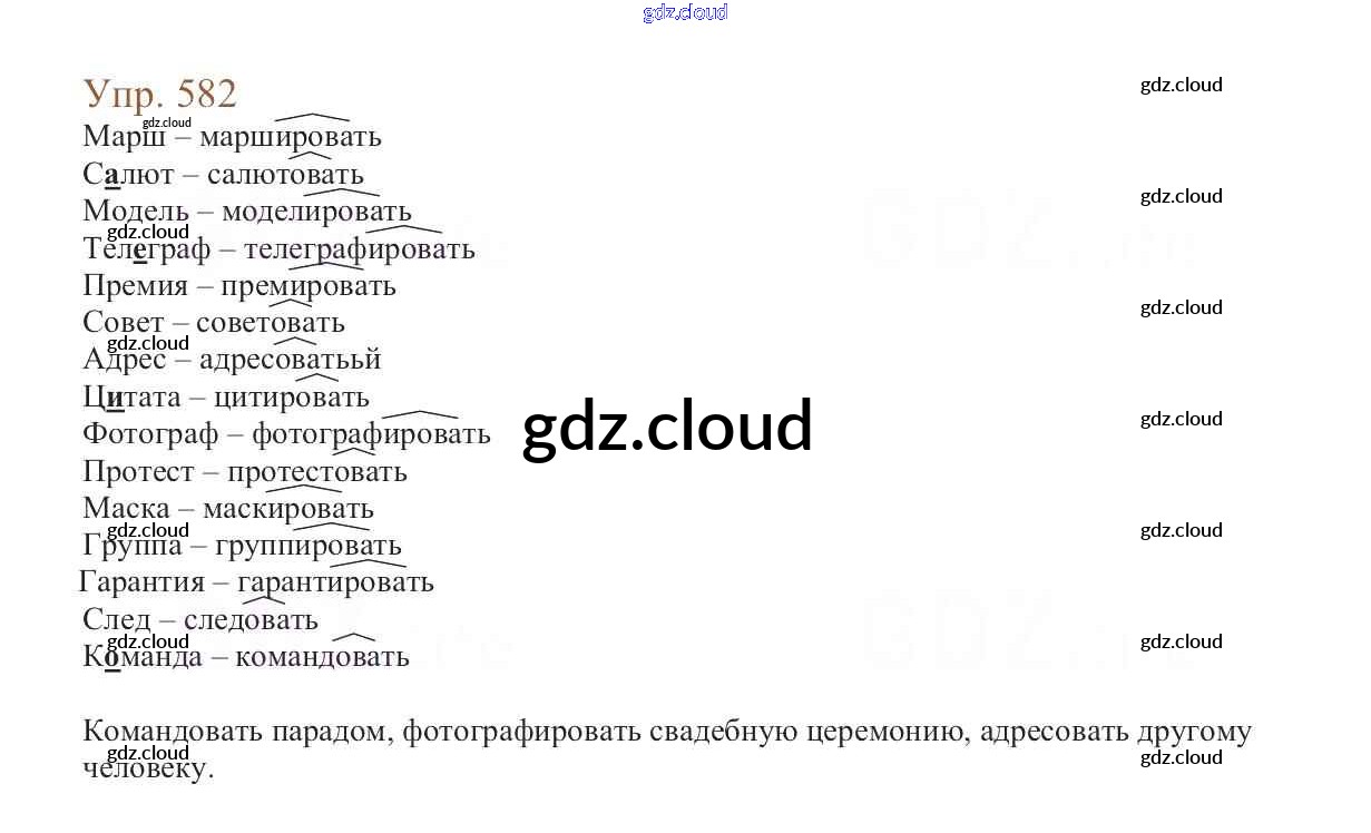 Ответ на задание 582 Учебник Русский язык за 6 (шестой) класс Баранов, Ладыженская, Тростенцова, Григорян, Кулибаба 2015, 2022 Часть 1, 2