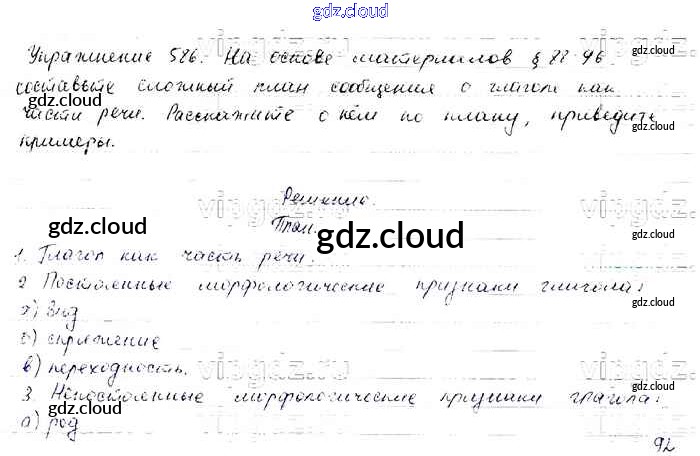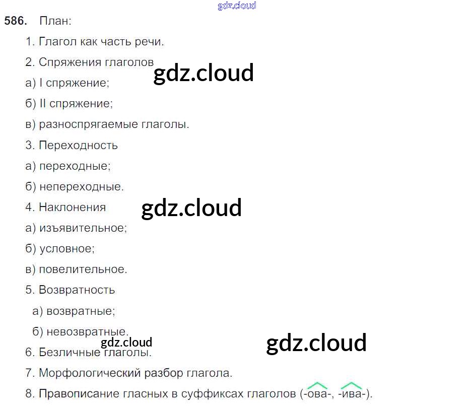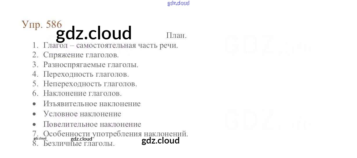 Ответ на задание 586 Учебник Русский язык за 6 (шестой) класс Баранов, Ладыженская, Тростенцова, Григорян, Кулибаба 2015, 2022 Часть 1, 2