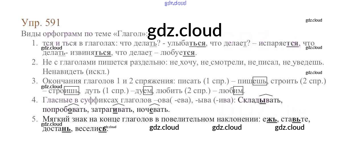 Ответ на задание 591 Учебник Русский язык за 6 (шестой) класс Баранов, Ладыженская, Тростенцова, Григорян, Кулибаба 2015, 2022 Часть 1, 2