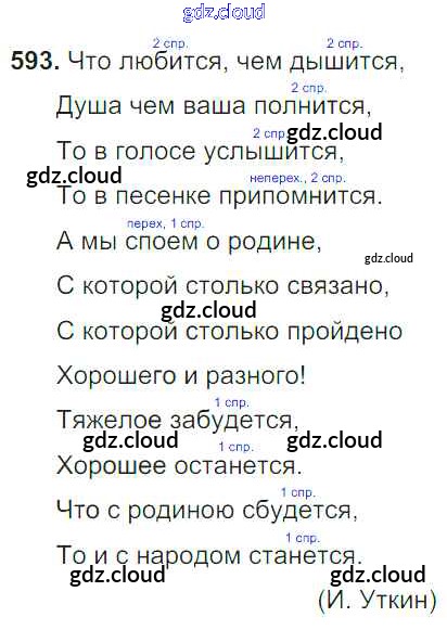 Ответ на задание 593 Учебник Русский язык за 6 (шестой) класс Баранов, Ладыженская, Тростенцова, Григорян, Кулибаба 2015, 2022 Часть 1, 2