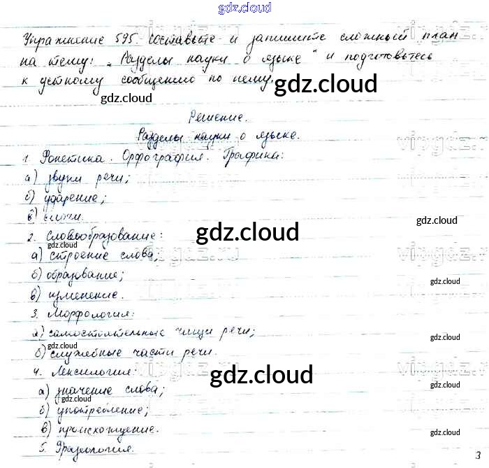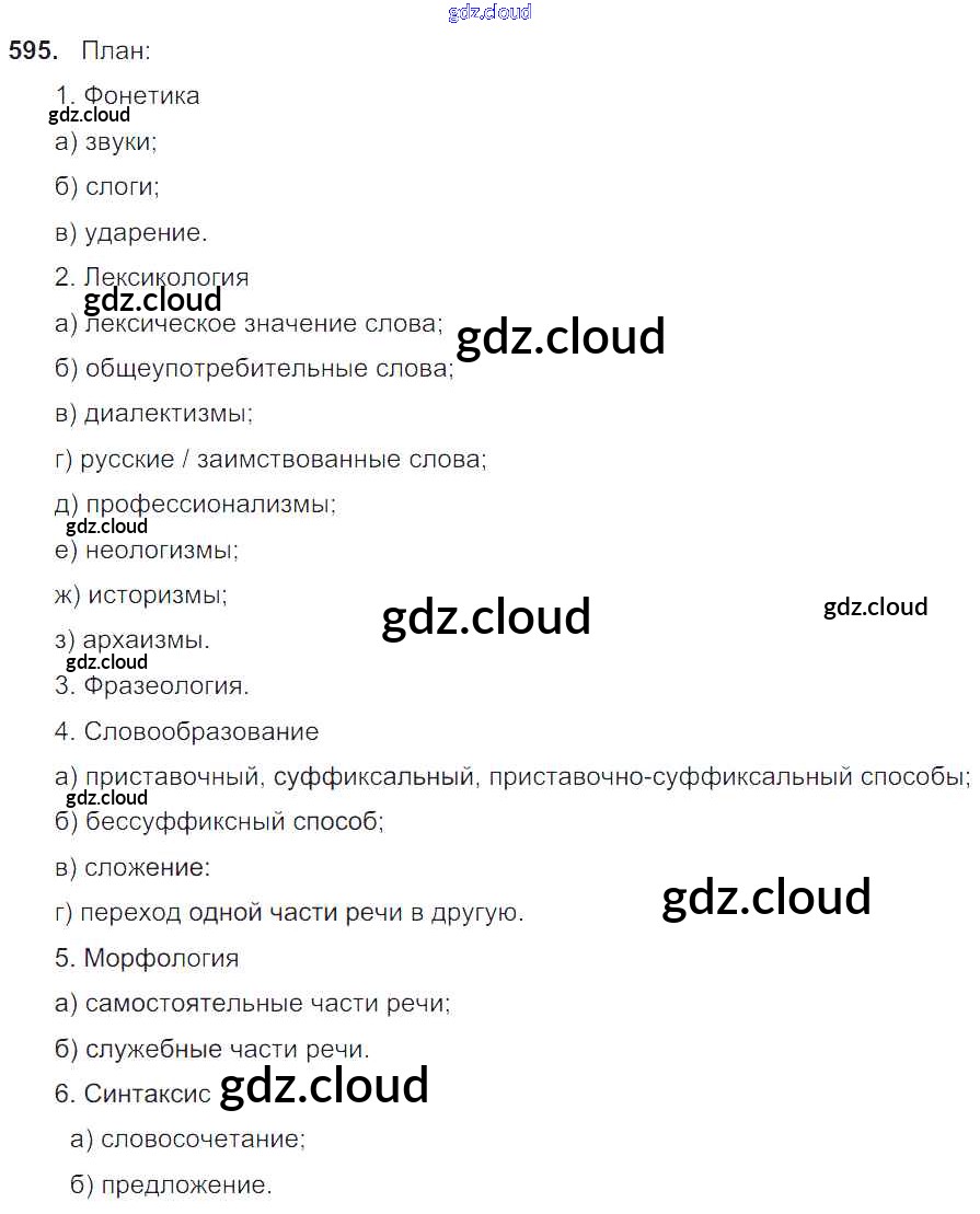 Ответ на задание 595 Учебник Русский язык за 6 (шестой) класс Баранов, Ладыженская, Тростенцова, Григорян, Кулибаба 2015, 2022 Часть 1, 2