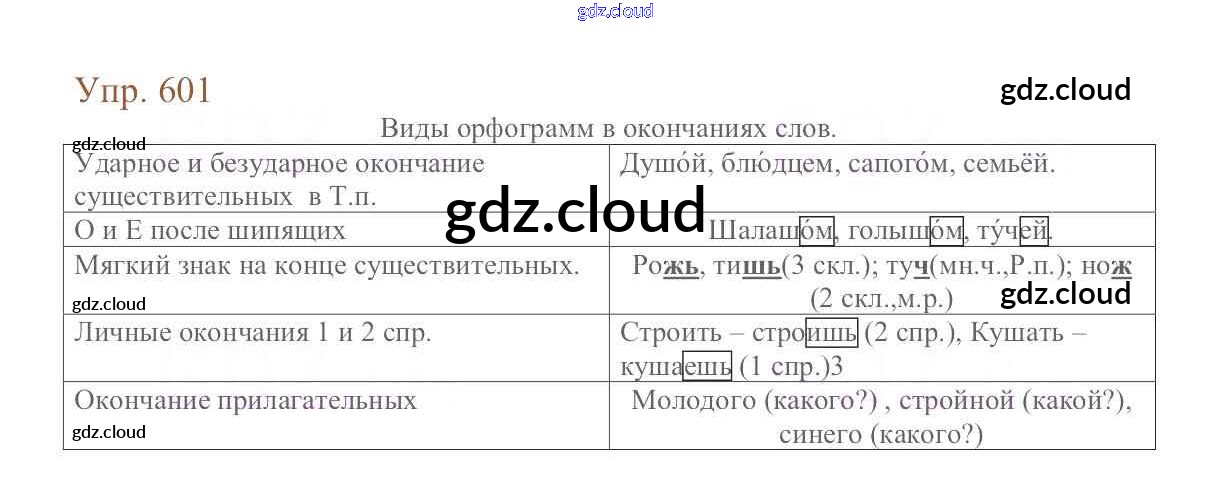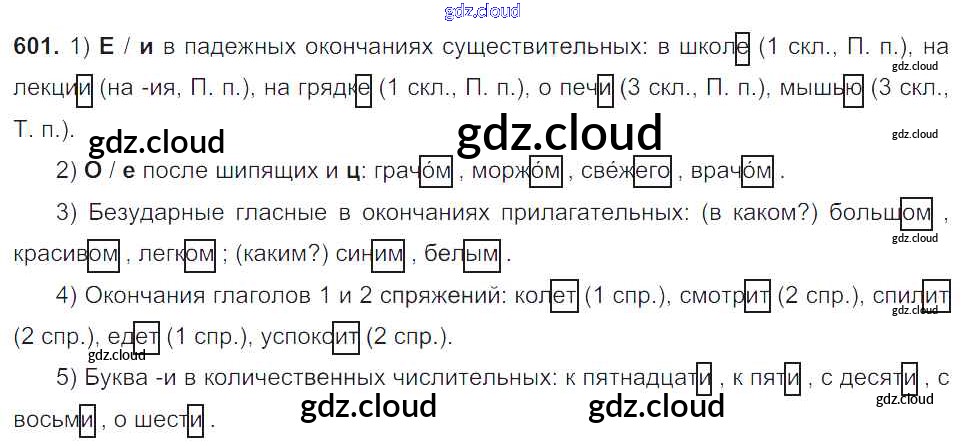 Ответ на задание 601 Учебник Русский язык за 6 (шестой) класс Баранов, Ладыженская, Тростенцова, Григорян, Кулибаба 2015, 2022 Часть 1, 2