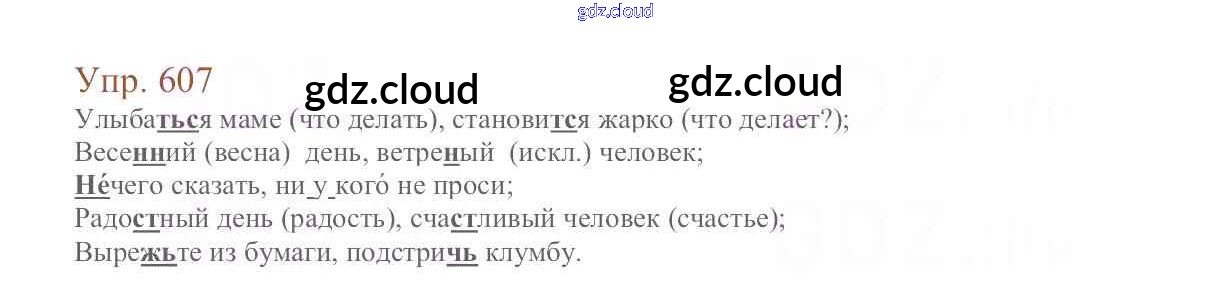Ответ на задание 607 Учебник Русский язык за 6 (шестой) класс Баранов, Ладыженская, Тростенцова, Григорян, Кулибаба 2015, 2022 Часть 1, 2