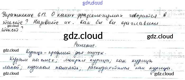 Ответ на задание 613 Учебник Русский язык за 6 (шестой) класс Баранов, Ладыженская, Тростенцова, Григорян, Кулибаба 2015, 2022 Часть 1, 2