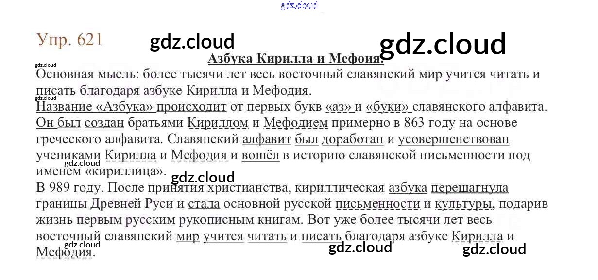 Ответ на задание 621 Учебник Русский язык за 6 (шестой) класс Баранов, Ладыженская, Тростенцова, Григорян, Кулибаба 2015, 2022 Часть 1, 2