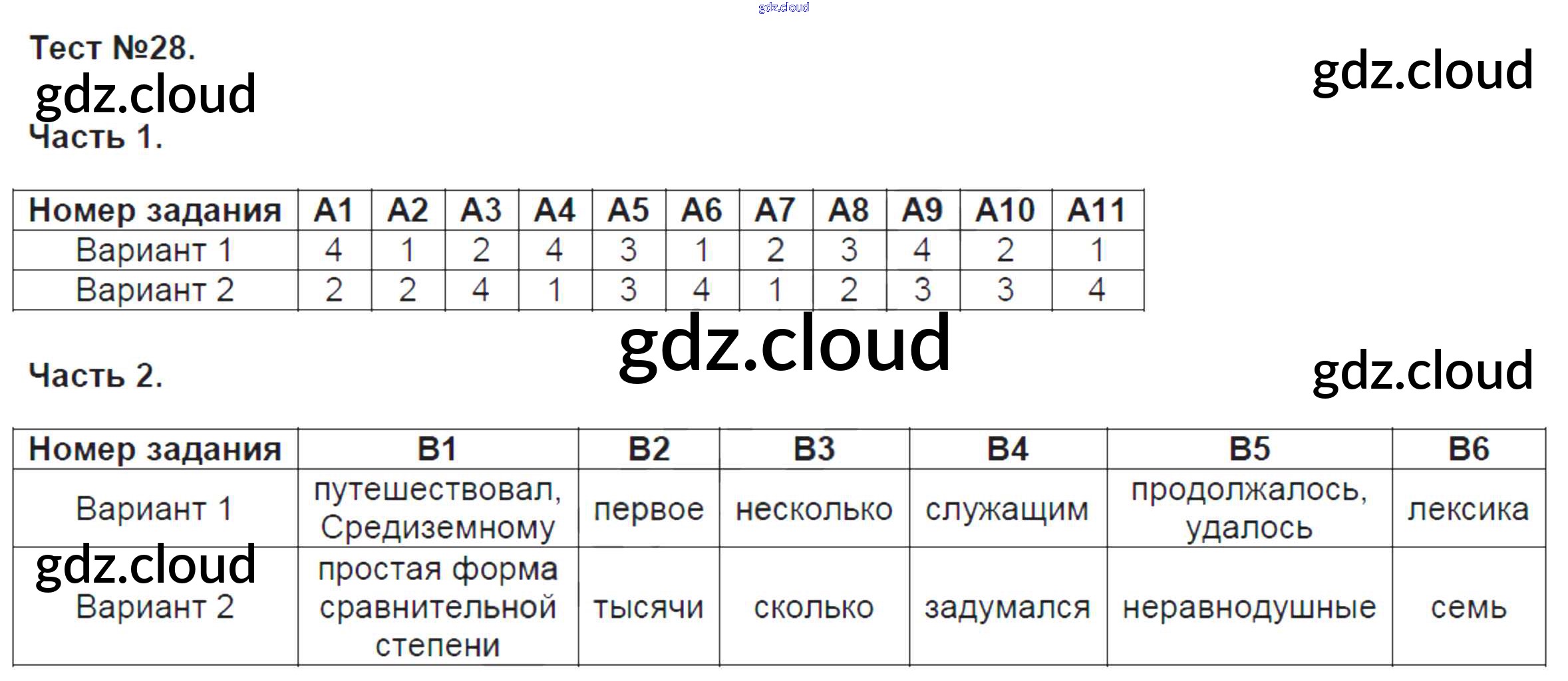 Ответ на задание Тест-28 Контрольно-измерительные материалы (КИМ) Русский язык за 6 (шестой) класс Егорова 2017 ФГОС онлайн и без номера телефона.
