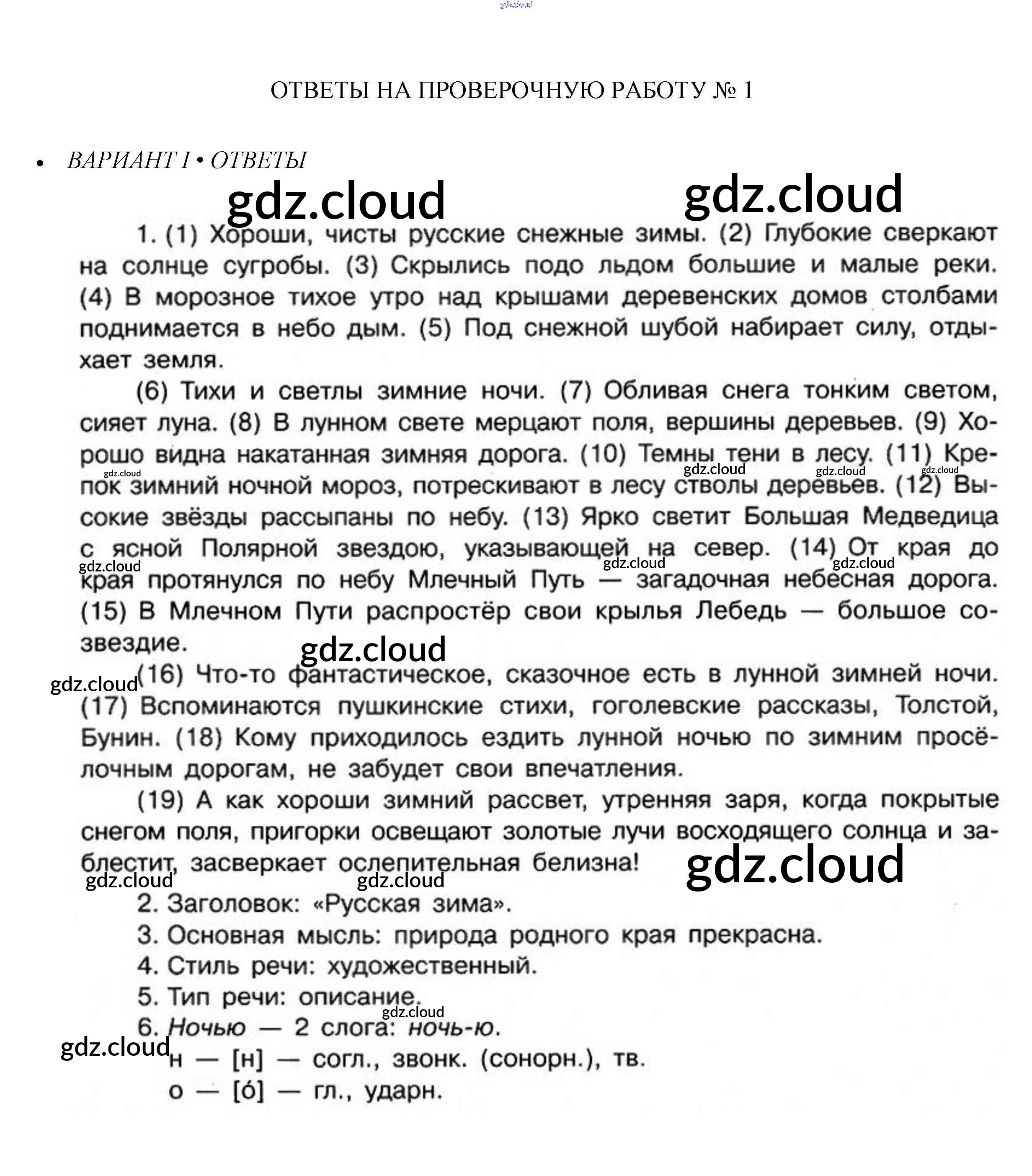 Ответ на задание 1 Проверочные работы Русский язык за 6 (шестой) класс Егорова 2018