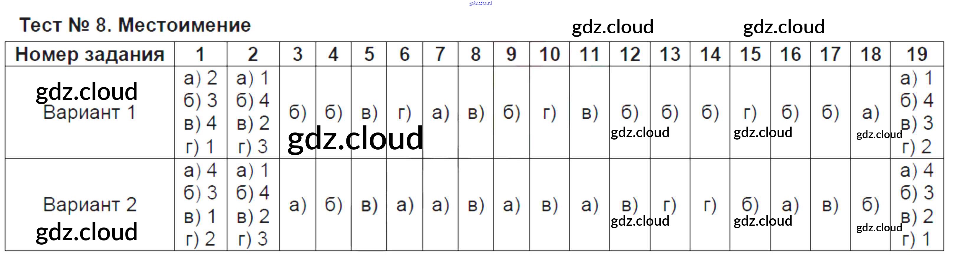 Ответ на задание Тест №8. Местоимение Тематические тесты Русский язык за 6 (шестой) класс Каськова УМК 2016 ФГОС онлайн и без номера телефона.