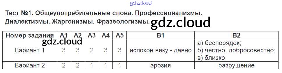 Ответ на задание Тест-1. Общеупотребительные слова. Профессионализмы Контрольно-измерительные материалы (КИМ) Русский язык за 6 (шестой) класс Аксенова 2014