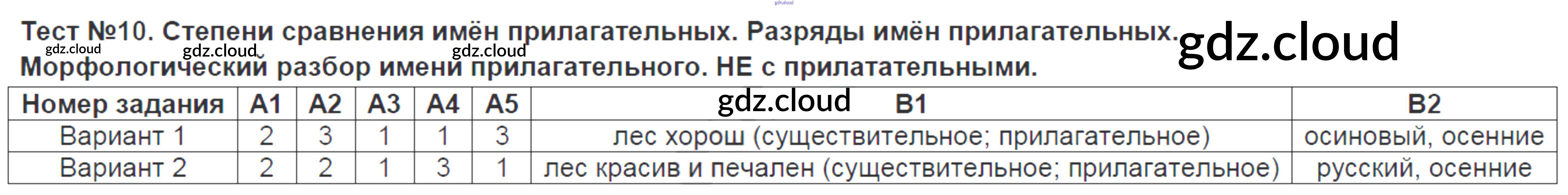 Ответ на задание Тест-10. Степени сравнения имён прилагательных. Разряды имён прилагательных Контрольно-измерительные материалы (КИМ) Русский язык за 6 (шестой) класс Аксенова 2014