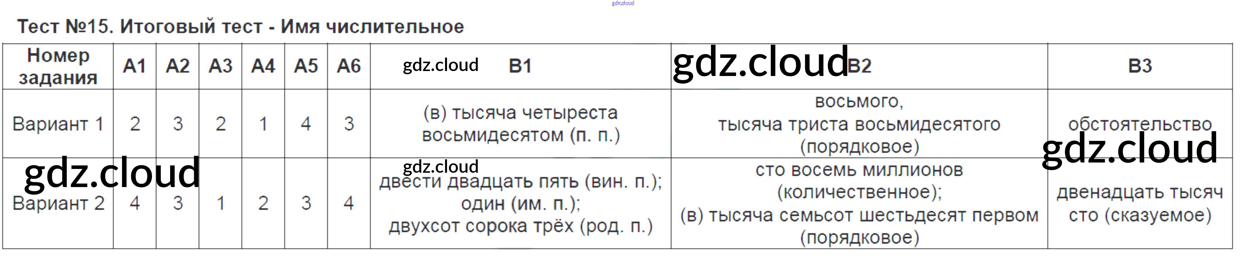 Ответ на задание Тест-15. Итоговый тест - Имя числительное Контрольно-измерительные материалы (КИМ) Русский язык за 6 (шестой) класс Аксенова 2014