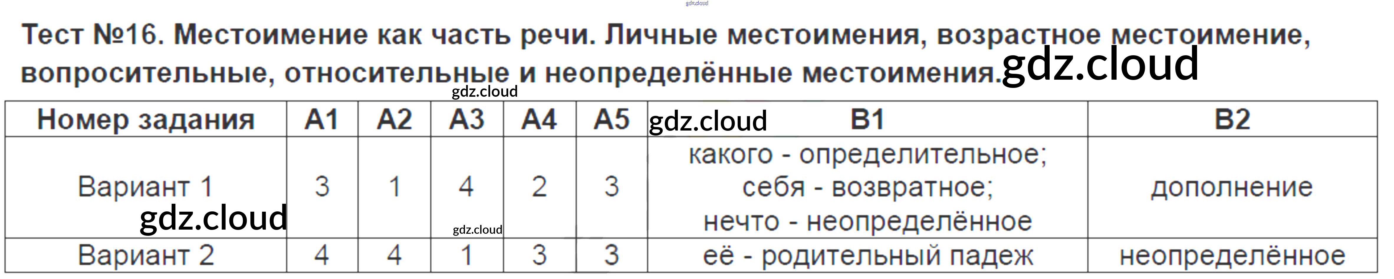 Ответ на задание Тест-16. Местоимение как часть речи Контрольно-измерительные материалы (КИМ) Русский язык за 6 (шестой) класс Аксенова 2014