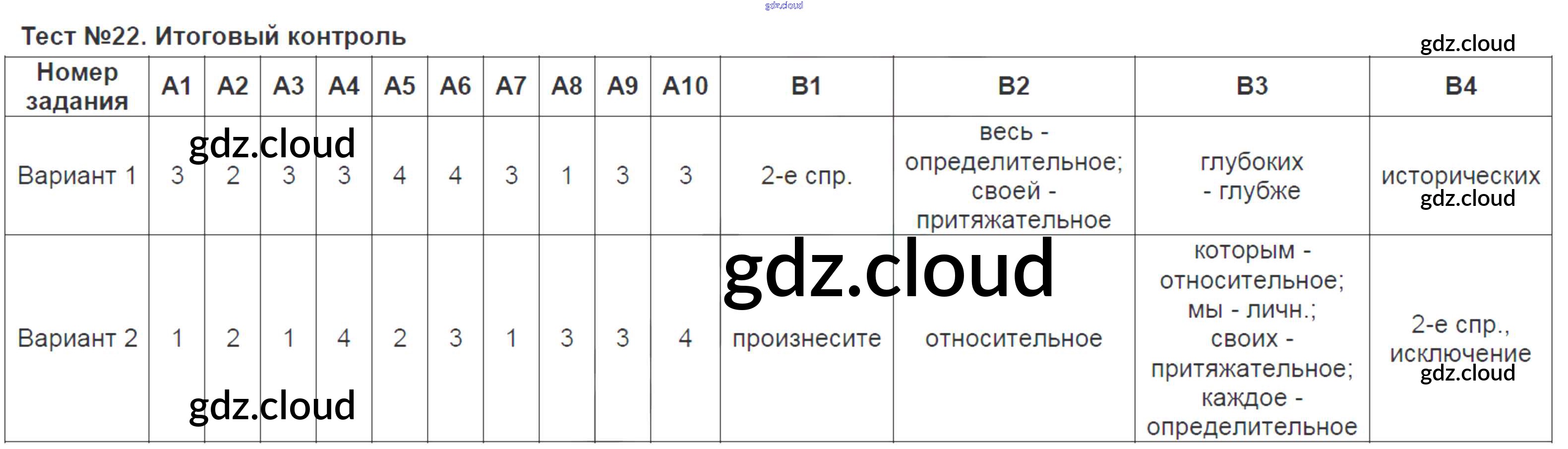 Ответ на задание Тест-22. Итоговый контроль Контрольно-измерительные материалы (КИМ) Русский язык за 6 (шестой) класс Аксенова 2014