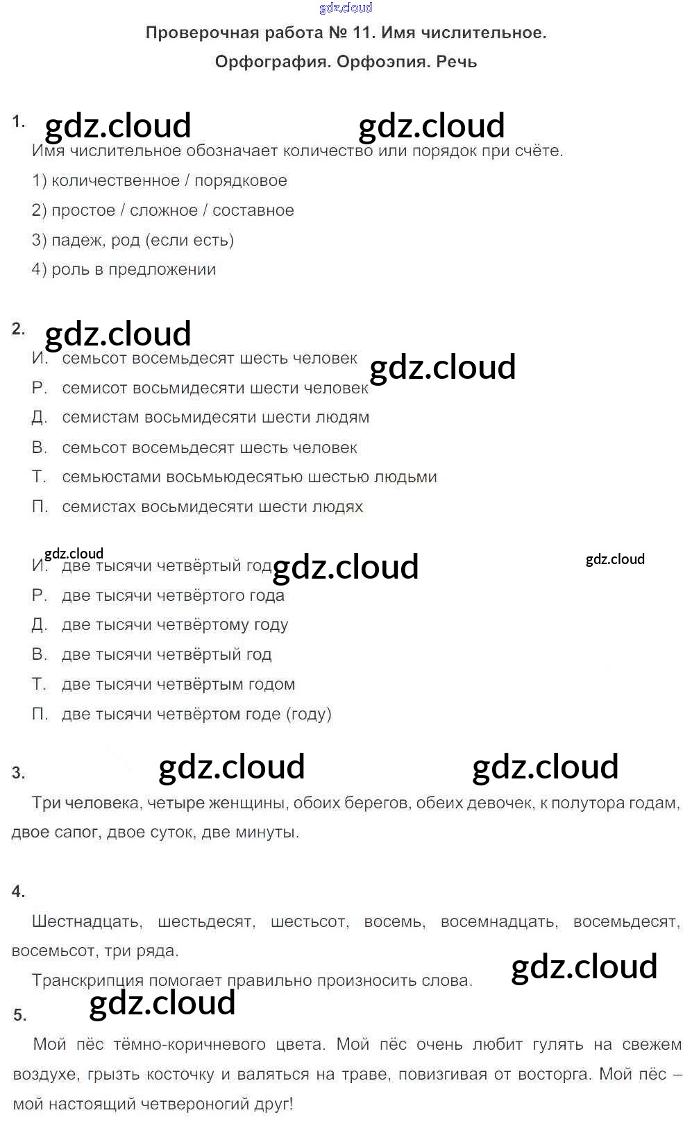 Ответ на задание ПР №11. Имя числительное. Орфография. Орфоэпия. Речь Тетрадь для оценки качества знаний Русский язык за 6 (шестой) класс Львов Вертикаль 2015
