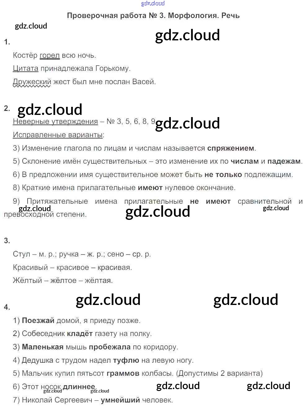 Ответ на задание ПР №3. Морфология. Речь Тетрадь для оценки качества знаний Русский язык за 6 (шестой) класс Львов Вертикаль 2015