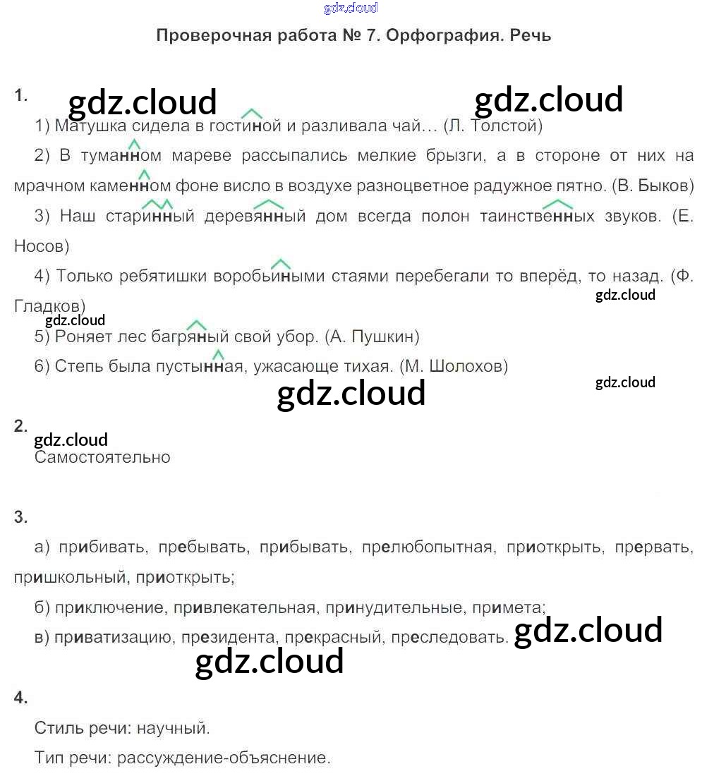 Ответ на задание ПР №7. Орфография. Речь Тетрадь для оценки качества знаний Русский язык за 6 (шестой) класс Львов Вертикаль 2015