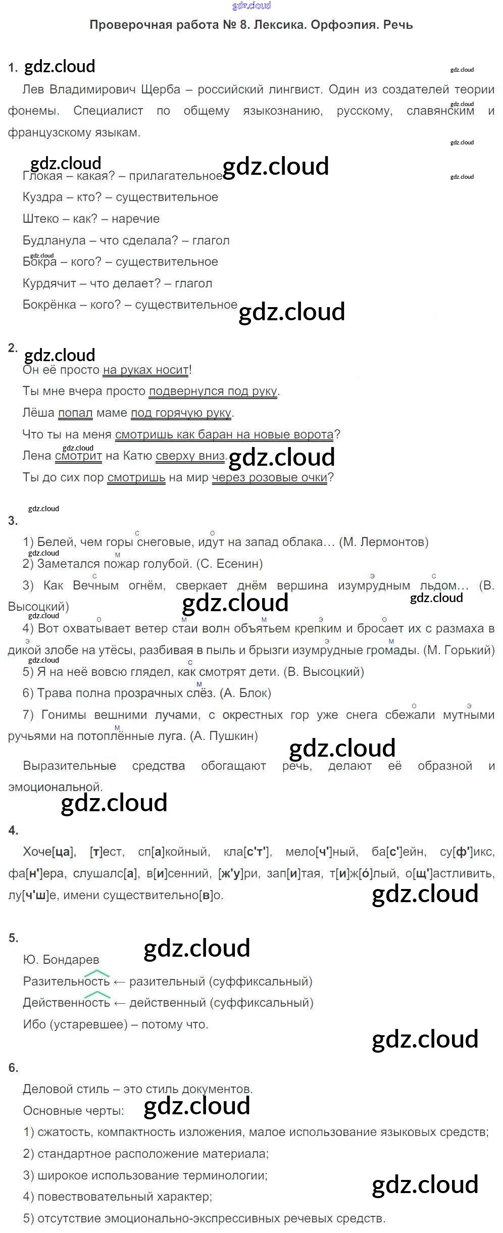 Ответ на задание ПР №8. Лексика. Орфоэпия. Речь Тетрадь для оценки качества знаний Русский язык за 6 (шестой) класс Львов Вертикаль 2015