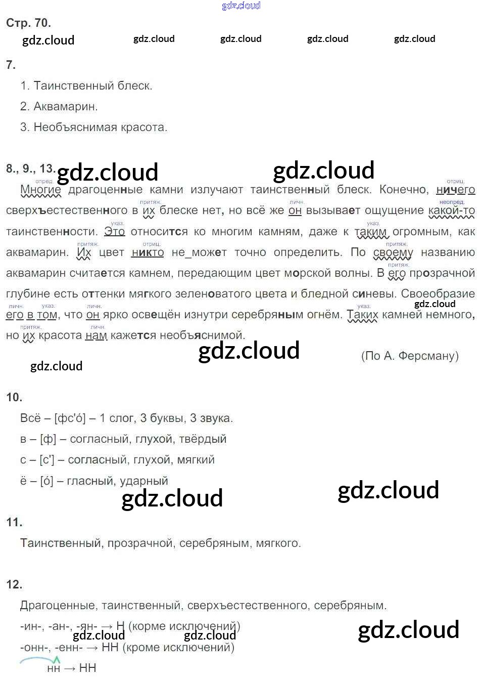 Ответ на задание 70 Комплексный анализ текста (Рабочая тетрадь) Русский язык за 6 (шестой) класс Малюшкин 2014 ФГОС онлайн и без номера телефона.