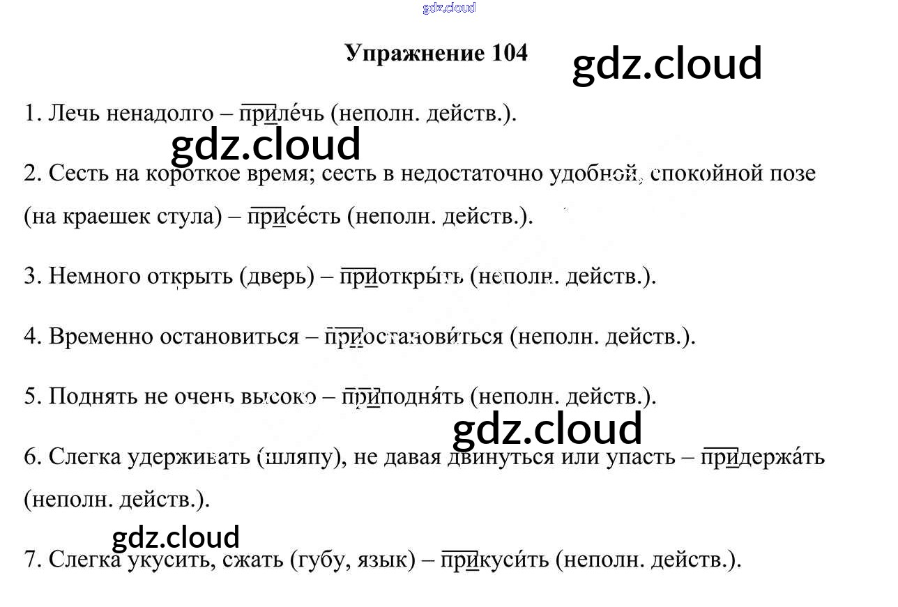 Ответ на задание 104 Учебник Русский язык за 6 (шестой) класс Мурина, Литвинко, Николаенко 2020 Часть