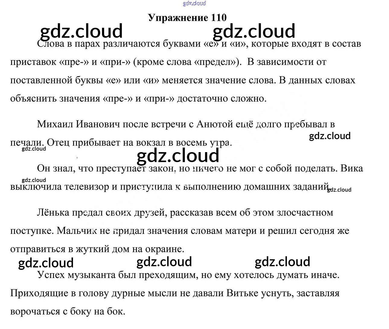 Ответ на задание 110 Учебник Русский язык за 6 (шестой) класс Мурина, Литвинко, Николаенко 2020 Часть