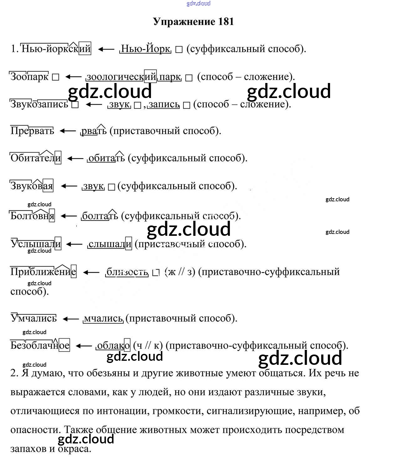 Ответ на задание 181 Учебник Русский язык за 6 (шестой) класс Мурина, Литвинко, Николаенко 2020 Часть