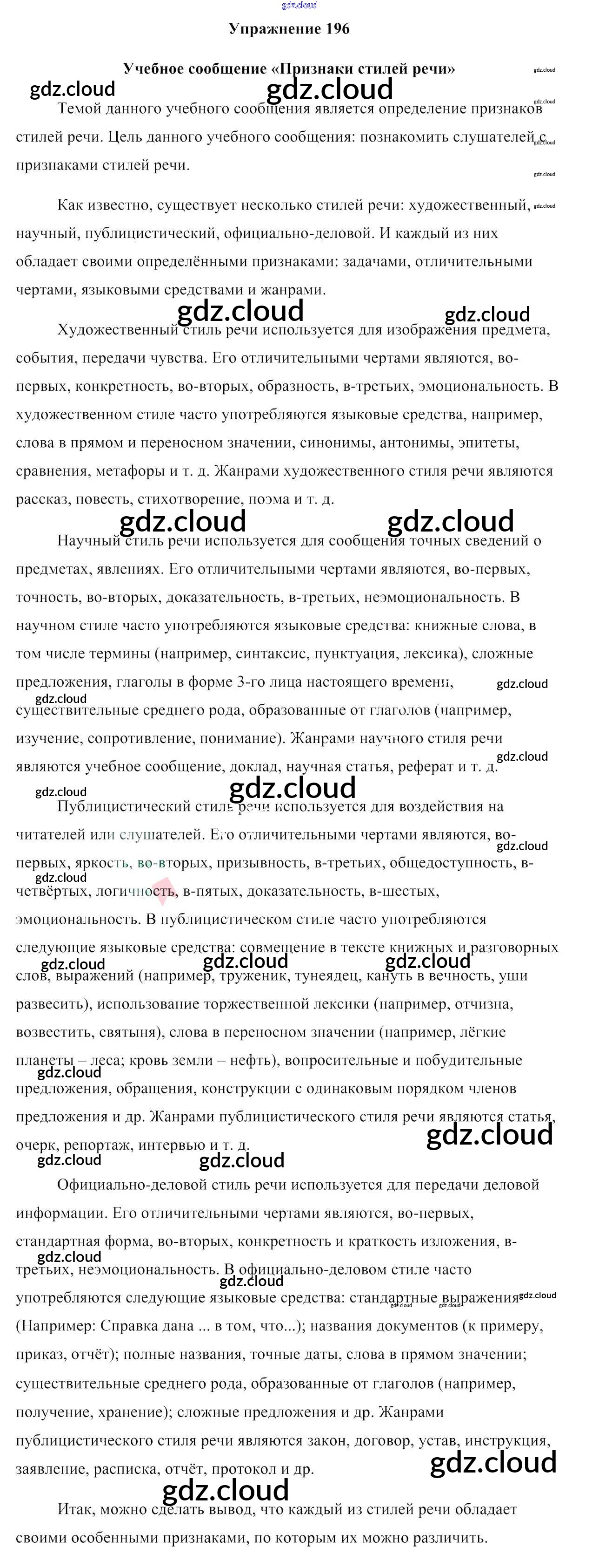 Ответ на задание 196 Учебник Русский язык за 6 (шестой) класс Мурина, Литвинко, Николаенко 2020 Часть