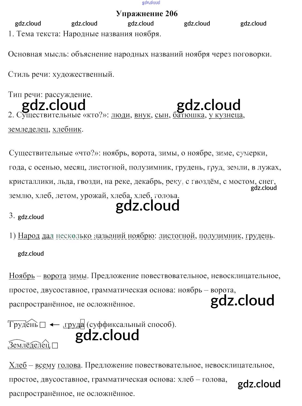 Ответ на задание 206 Учебник Русский язык за 6 (шестой) класс Мурина, Литвинко, Николаенко 2020 Часть