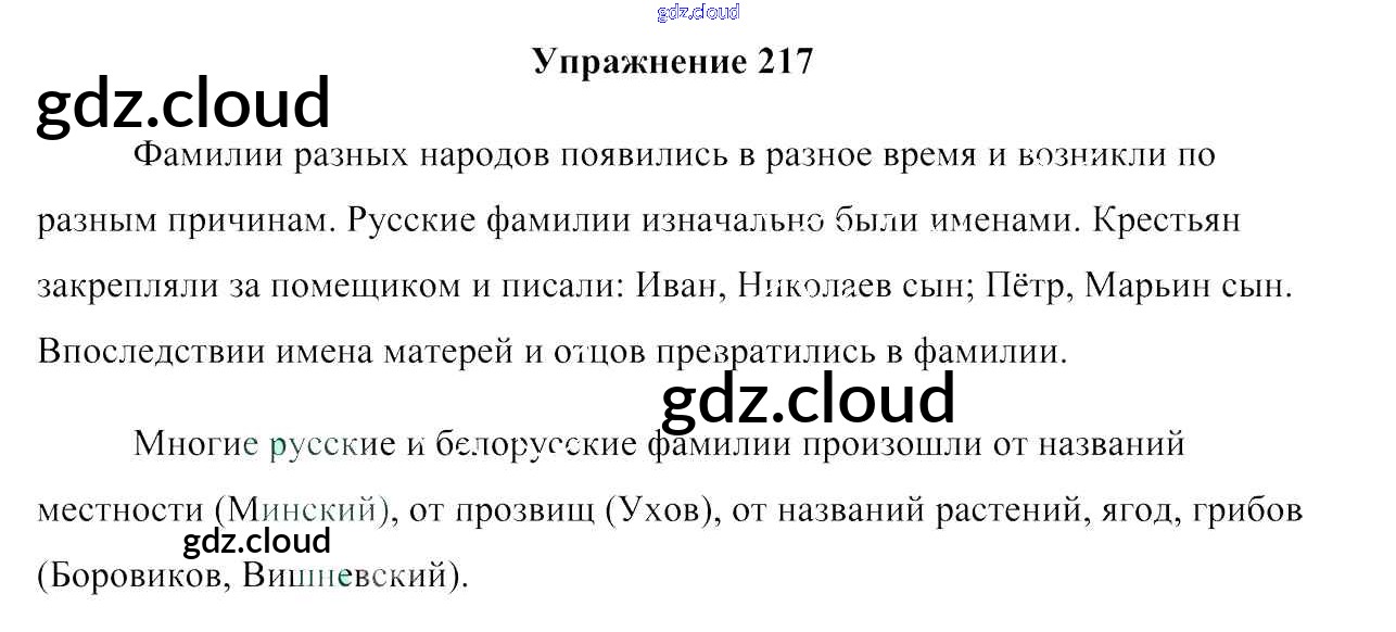 Ответ на задание 217 Учебник Русский язык за 6 (шестой) класс Мурина, Литвинко, Николаенко 2020 Часть