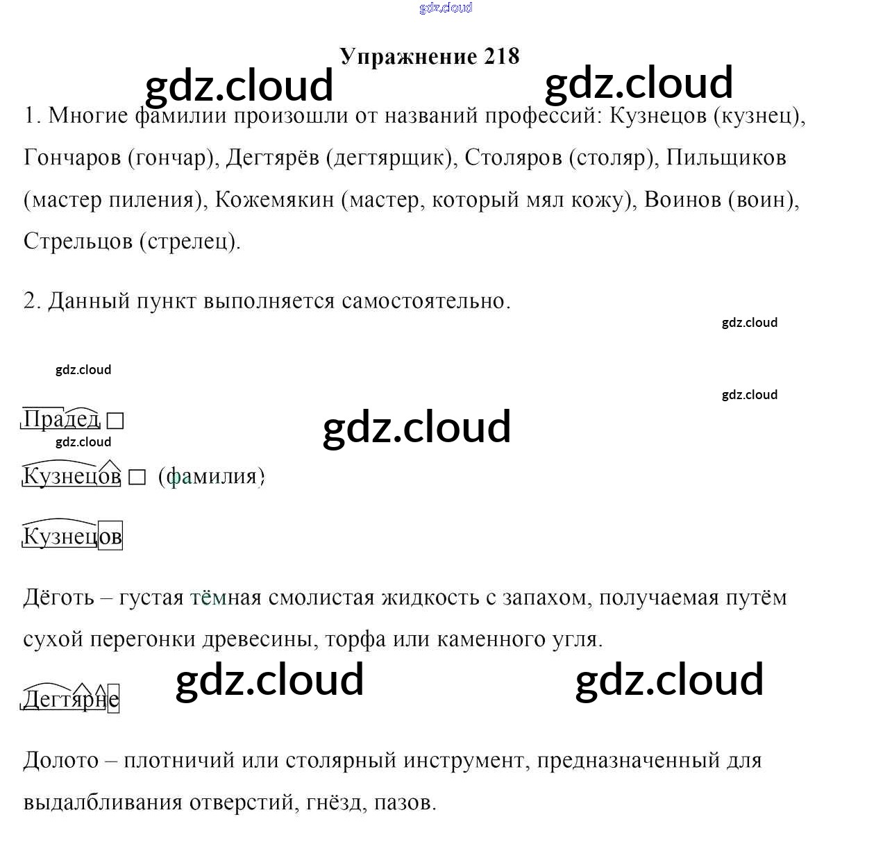 Ответ на задание 218 Учебник Русский язык за 6 (шестой) класс Мурина, Литвинко, Николаенко 2020 Часть