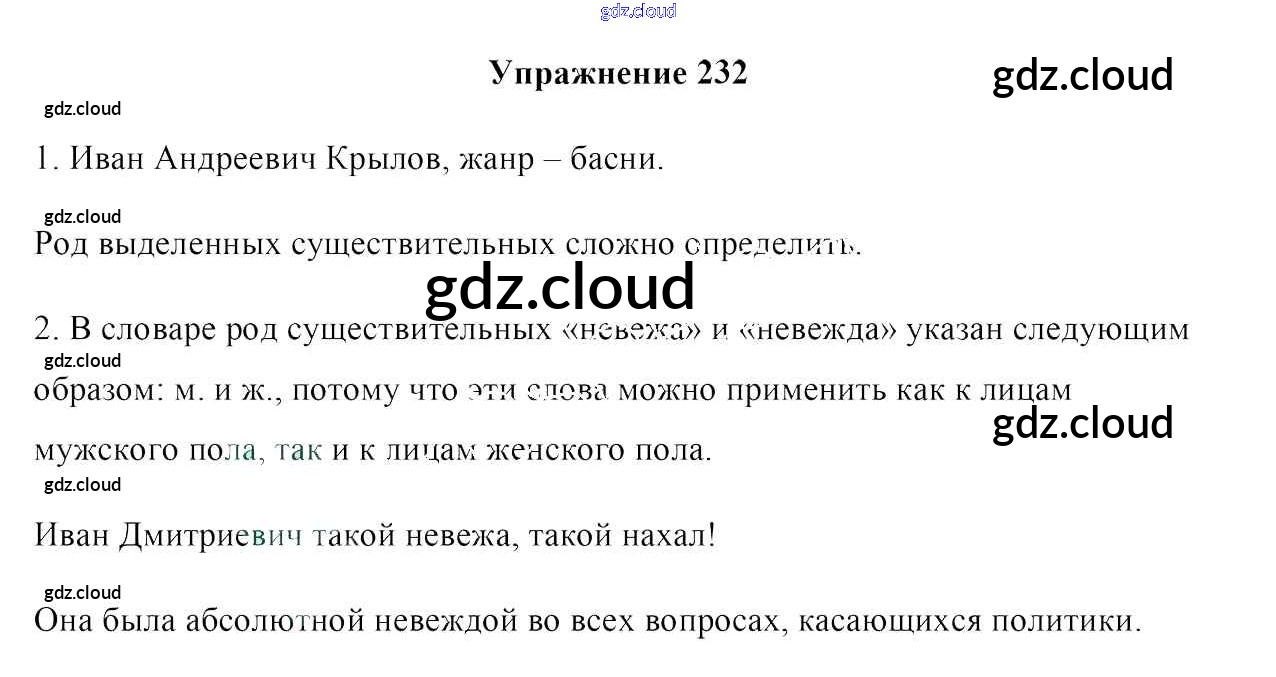 Ответ на задание 232 Учебник Русский язык за 6 (шестой) класс Мурина, Литвинко, Николаенко 2020 Часть