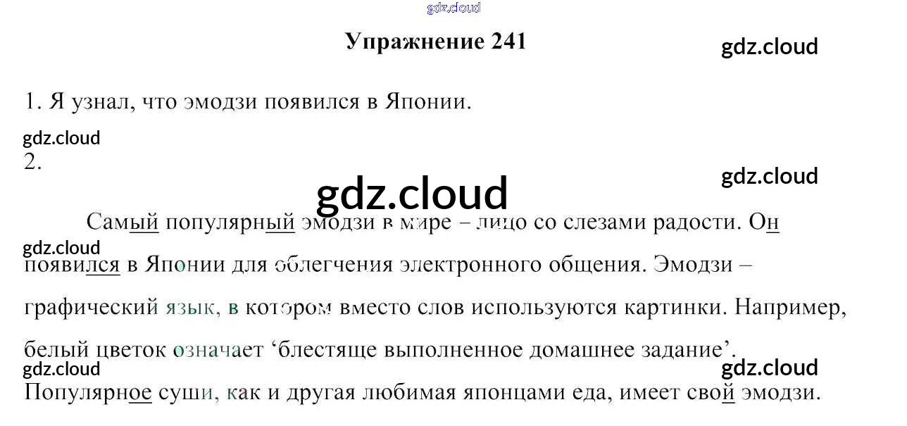 Ответ на задание 241 Учебник Русский язык за 6 (шестой) класс Мурина, Литвинко, Николаенко 2020 Часть
